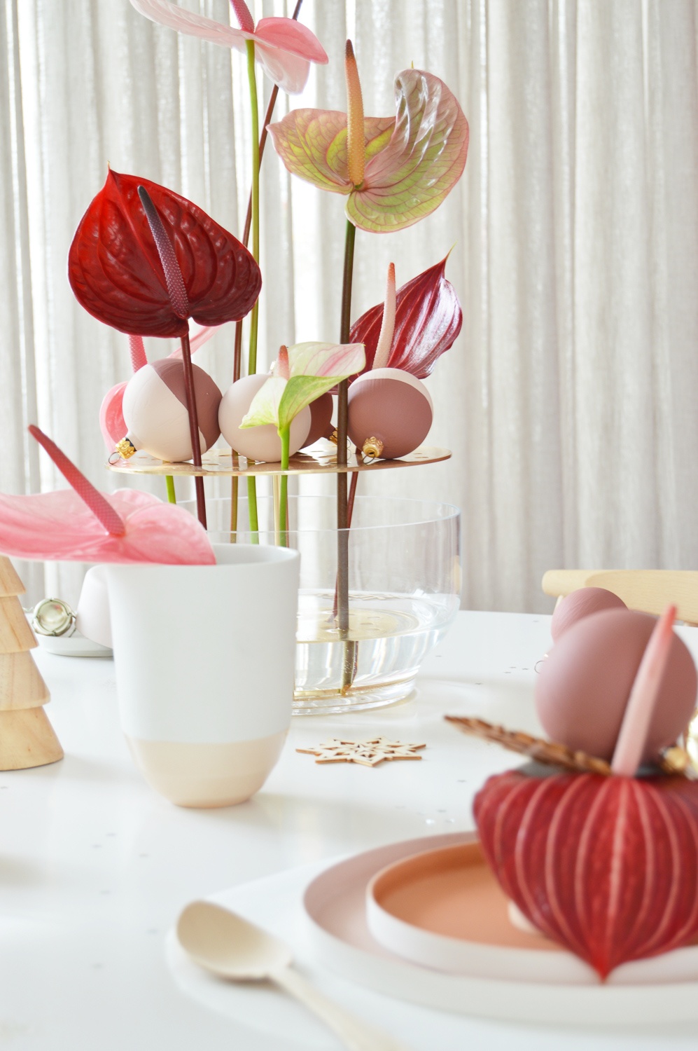 Trois idées pour décorer une table de Noël festive avec des anthuriums