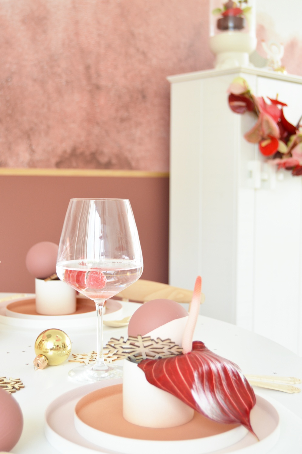Les couleurs classiques de Noël sont, bien sûr, le rouge et le vert. Mais d’autres couleurs peuvent être toutes aussi festives ! Comme le montre la photo ci-dessous, le rose, par exemple, se marie très bien avec le rouge et le doré. La table n’en sera pas moins festive, bien au contraire !