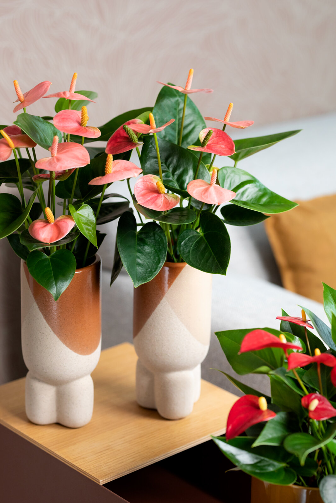 L’anthurium s’inscrit aussi parfaitement dans la tendance de l’habitat conscient. Jeter moins et profiter davantage de ce qui dure. Plutôt que d’acheter chaque semaine des fleurs fraîches, optez pour une solution durable qui apportera de la couleur à votre intérieur et en réchauffera l’ambiance !