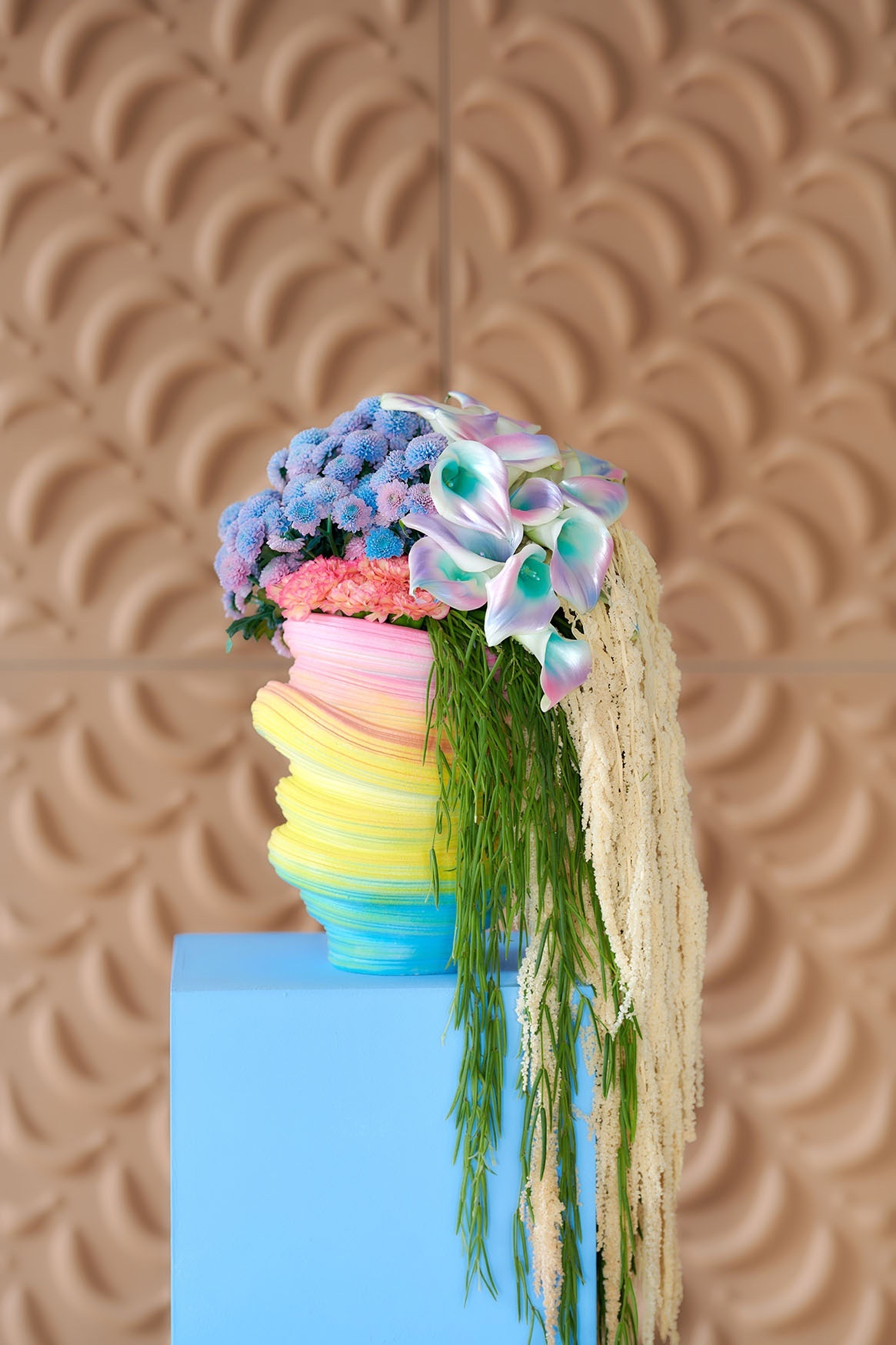 Dans un intérieur Unexpected Encounter, la tension que nous recherchons se traduit par un univers presque féérique. Les éléments qui attirent l’attention y jouent un rôle majeur, et les objets surréalistes sont associés de manière très contrastée. Les apparences sont trompeuses, et les fleurs et les plantes prennent un aspect magique. Ne soyez donc pas surpris de voir un bouquet contrasté de callas et d’amarantes retombantes. Ou des bouquets aux tons pastel très doux, trompeusement adorables. Le même effet insaisissable s’observe chez les plantes et les compositions végétales. Des feuilles aux couleurs « décalées », comme le jaune et les teintes de rose, ou des plantes qui créent un contraste fantasque entre elles. Bref, les compositions débordent des lignes et racontent une histoire dont le sens échappe quelque peu.