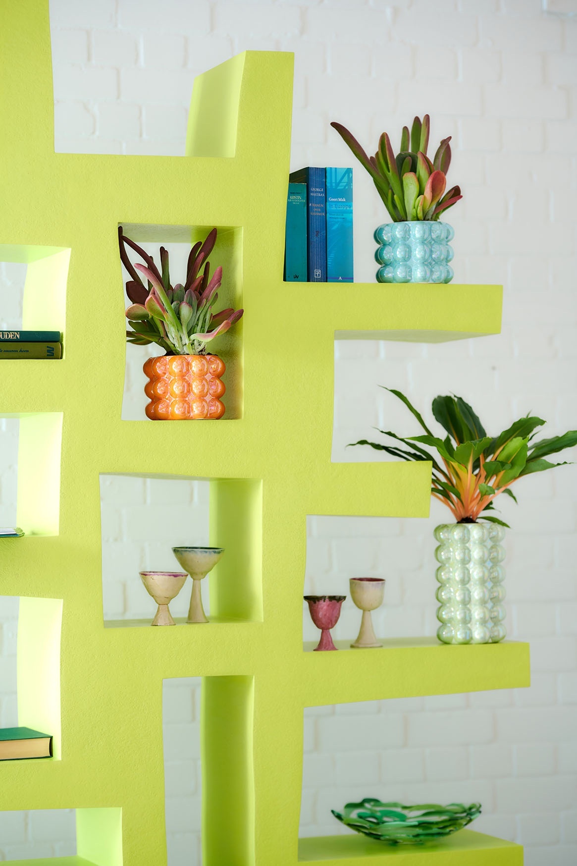 Outre la forme, la couleur est le principal élément de la tendance Unexpected Encounter. La palette de couleurs comporte des teintes extrêmement vives à l’aspect également aqueux, les fameux pastels fluo. Comme le vert menthe, le lilas, le jaune et l’orange.