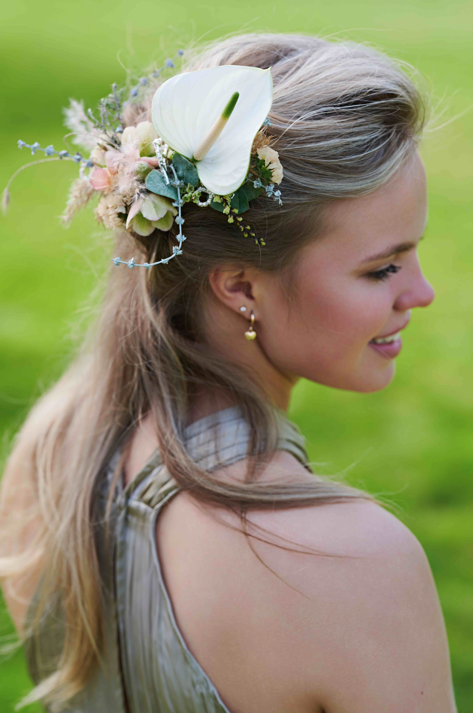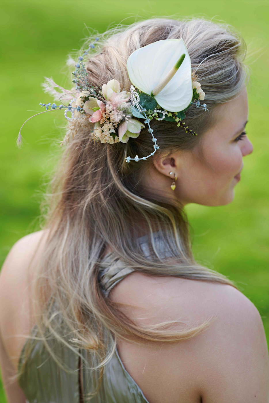 L’anthurium dans une coiffure de mariée